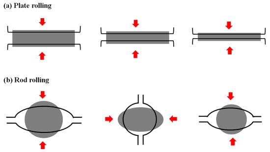 Schematic description of (a) plate and (b) rod during the rolling processes.