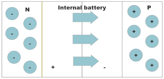The main material of photovoltaic cells is semiconductors, which have the best photovoltaic effect, that is, they are most efficient way to convert solar energy into electricity. This is because, when the PN node in the semiconductor is illuminated by sunlight, the neutral atoms in it will lose electrons and generate electron–holes. At this time, under the action of the electric field, the electrons will be forced to move toward the N region. The hole moves in the opposite direction to reach the P area. At this time, the PN junction generates a new electric field with opposite polarity at both ends, and has the opposite polarity to the original electric field. The interaction between the two forces the P zone to be positively charged and the N zone to be negatively charged. Photogenerated electromotive forces are generated at both ends. When a load is connected to both ends of the PN junction, a photogenerated current is generated, that is, electrical energy is available for the load. The photovoltaic effect principle diagram is shown in Figure 1.