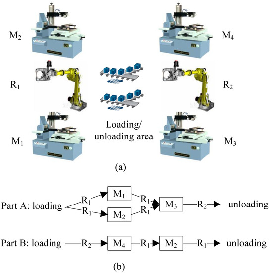 - Lee, S.; Tilbury, D.M. Deadlock-free resource allocation control for a reconfigurable manufacturing system with serial and parallel configuration. IEEE Trans. Syst. Man Cybern. Part C (Appl. Rev.) 2007, 37, 1373–1381. [Google Scholar] [CrossRef]