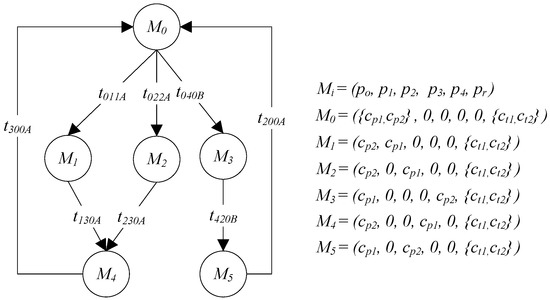 - Târnaucă, B.; Puiu, D.; Comnac, V.; Suciu, C. Modelling a flexible manufacturing system using reconfigurable finite capacity petri nets. In Proceedings of the 2012 13th International Conference on. Optimization of Electrical and Electronic Equipment (OPTIM), Brasov, Romania, 24–26 May 2012; pp. 1079–1084. [Google Scholar]