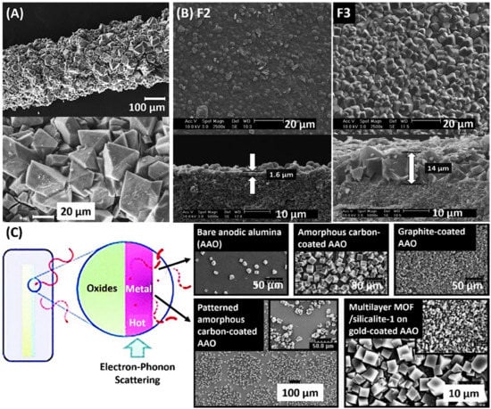 - Kim, K.-J.; Chong, X.; Kreider, P.B.; Ma, G.; Ohodnicki, P.R.; Baltrus, J.P.; Wang, A.X.; Chang, C.-H. Plasmonics-enhanced metal-organic framework nanoporous films for highly sensitive near-infrared absorption. J. Mater. Chem. C 2015, 3, 2763–2767. [Google Scholar] [CrossRef]