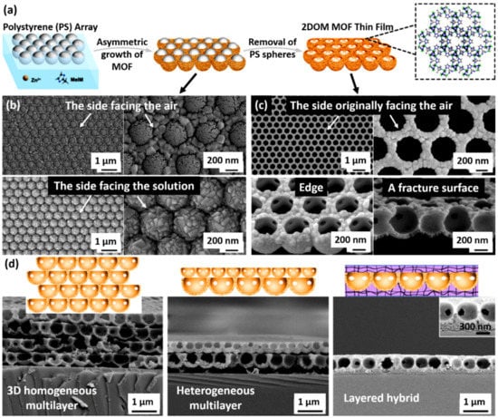 - Li, L.; Jiao, X.; Chen, D.; Li, C. One-step asymmetric growth of continuous metal-organic framework thin films on two-dimensional colloidal crystal arrays: A facile approach toward multifunctional superstructures. Cryst. Growth Des. 2016, 16, 2700–2707. [Google Scholar] [CrossRef]