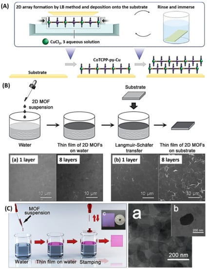 - Motoyama, S.; Makiura, R.; Sakata, O.; Kitagawa, H. Highly crystalline nanofilm by layering of porphyrin metal-organic framework sheets. J. Am. Chem. Soc. 2011, 133, 5640–5643. [Google Scholar] [CrossRef] [PubMed]