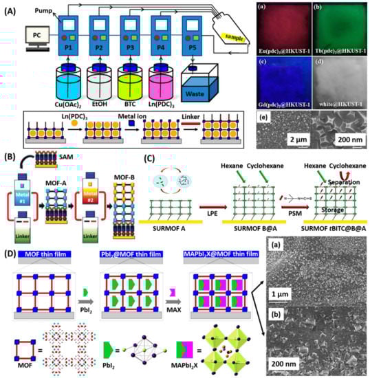 - Wang, Z.; Wöll, C. Fabrication of metal-organic framework thin films using programmed layer-by-layer assembly techniques. Adv. Mater. Technol. 2019, 4, 1800413. [Google Scholar] [CrossRef]