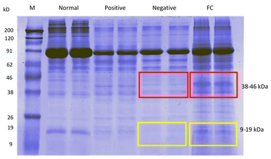 The distribution of unique fertility-related protein of FC treated sperm group based on molecular weight in SDS-PAGE.