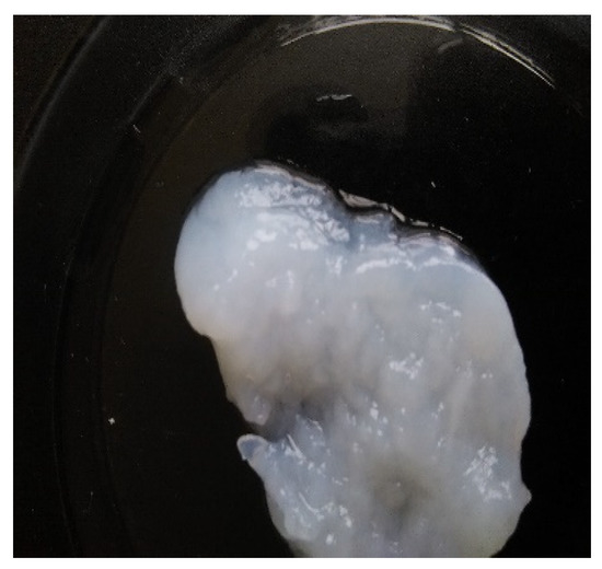 Films of BC were finely ground, distilled water was added under 1 to 1 ratio and agitated until a homogeneous dispersion was obtained using SAII-2 (Shanghai Sower Mechanical & Electrical Equipment, Shanghai, China) series homogenizer at 10,000 rpm. It is important to note that with insufficient water content in the BC, it is not possible to achieve satisfactory results. The resulting aqueous dispersion containing 1.23% of BC, was sterilized by autoclaving at temperature of +121 °C and pressure of 1.5 atm. The objects containing different content of BC were prepared and studied.