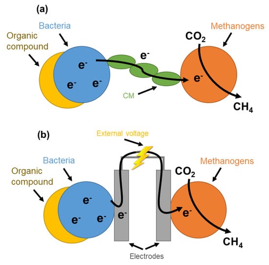 - Cheng, Q.; Call, D. Hardwiring microbes: Via direct interspecies electron transfer: Mechanisms and applications. Environ. Sci. Process. Impacts 2016, 18, 968–980. [Google Scholar] [CrossRef]
