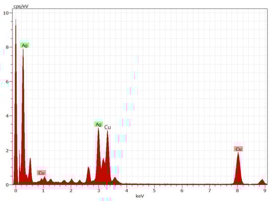 Energy-dispersive X-ray (EDX) analysis showing a strong peak of silver from synthesized Asf-AgNPs.