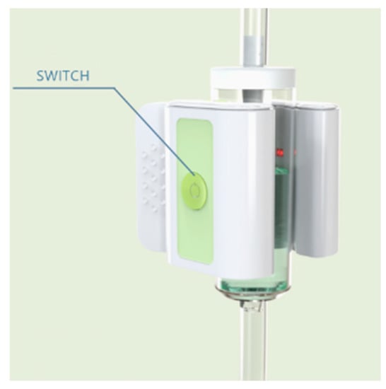 - Chen, F.-G.; Wang, J.-Y.; Chen, S.; Tu, S.-C.; Chen, K.-Y. A Hang-and-Play Intravenous Infusion Monitoring System. In Proceedings of the 2015 3rd International Conference on Applied Computing and Information Technology/2nd International Conference on Computational Science and Intelligence, Okayama, Japan, 12–16 July 2015; pp. 278–281. [Google Scholar]