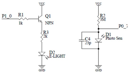 Infrared light-emitting diodes require a constant current to emit a constant intensity of light. In addition, infrared photodiodes need to convert current changes into digital signals and send them to the processor. There are a lot of active devices that can well meet the performance requirements of this circuit, but it will cause a significant increase in power and cost. The circuit shown in Figure 2 uses a bipolar junction transistor (BJT) constant current drive circuit and a passive resistor–capacitor op amp circuit to complete the relevant design requirements.