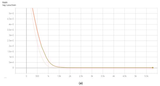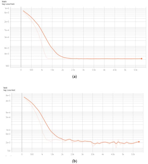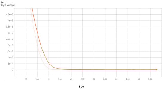 The mean square loss of main training times and the change of training times are shown in Figure 7. The x-coordinate is the training times and the y-coordinate is the loss degree and the data type is logarithmic. In Figure 7 and Figure 8, dark red represents the description of the original data. Bright red is used by the tensor board to filter the original data automatically, which can better show the trend of data loss rate.