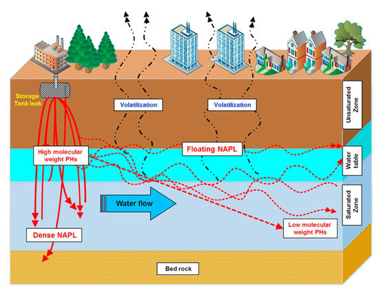A special environmental scenario must be done for the case of soil (Figure 3). Though social and economic development largely depend on petroleum hydrocarbons as a dominant source of energy, it has caused a huge area of contamination and relevant adverse effects [25]. The contamination of petroleum hydrocarbons disseminates from soil and water to human health. Petroleum hydrocarbon contamination on soil petroleum hydrocarbon contamination of soil is a widespread global environmental concern.