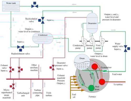 Structure of the steam/water loop [25] (reproduced with permission from Zhao, S.; Maxim, A.; Liu, S.; De Keyser, R.; and Ionescu, C, Processes; published by MDPI, 2018.).