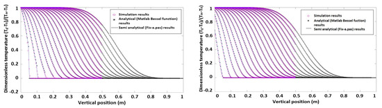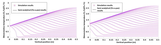 Dimensionless axial temperature profiles of both phases without heat production are shown in Figure 1. The simulation results are compared with the semi-analytical data from the 1D model. Figure 2 shows simulation results in the case with heat production.