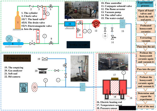 The reaction equipment was mainly composed of three systems: the inlet/exhaust system, the combustor and the monitoring system (Figure 3). The gas oxidation was mainly completed in the combustor.