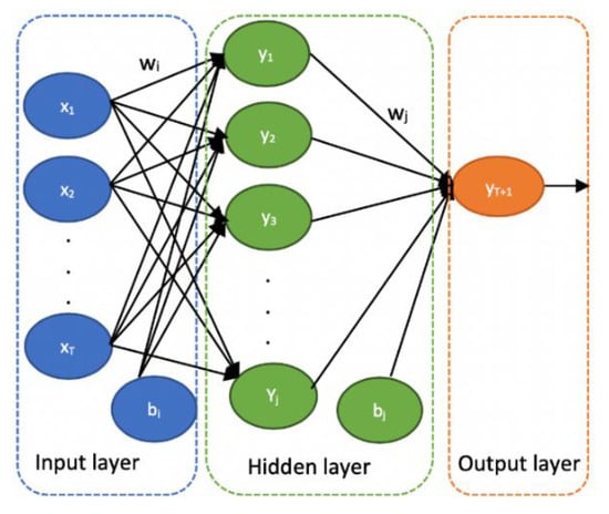 where denotes the input to hidden weight vector, denotes hidden to output weight vector, and denote bias vectors, refers to a non-linear hidden activation function while refers to a linear function and is the number of neurons in the hidden layer.