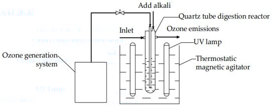 In the first process intensification scheme, two UV lamps were used to assist O3 for oxidation of N-compounds, and the schematic diagram of UV/O3 synergistic digestion experimental device is presented in Figure 1.