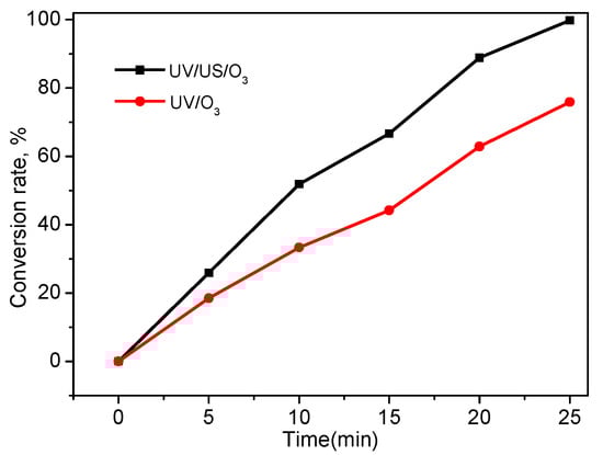 Figure 8. Comparison of digestion efficiency between UV/US/O3 and UV/O3.