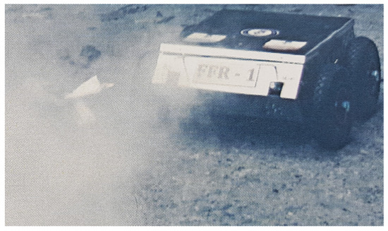 The collaboration between autonomous mobile robots, conducted at the experimental model level, ended with the extinguishment of a small fire, shown in Figure 6, (simulation of a fire that has paper fuel). The UAS presented here is a limiting one, so there remain several issues that will be investigated further in the future. We will seek to include artificial intelligence techniques in the functional domain of robots that move in two different unstructured environments.
