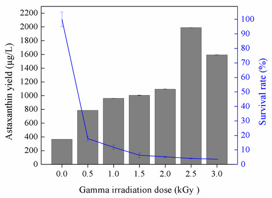 3.2. Astaxanthin Production by Gamma-Induced Mutants