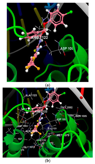 In the docking simulation, the ligands (compounds 1a–1g) are fitted into an expected binding site on the surface of a protein target. CLC Drug Discovery Workbench employed also MMFF94 (MMFF) force field when generate 3D structure on import. Different conformations are generated by rotation about rotatable bonds and conformation changes. Thus, the ligand optimizer was achieved by geometry minimization using MMFF94 force field. Also, the molecule is minimized with regard to the binding pocket geometry.