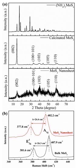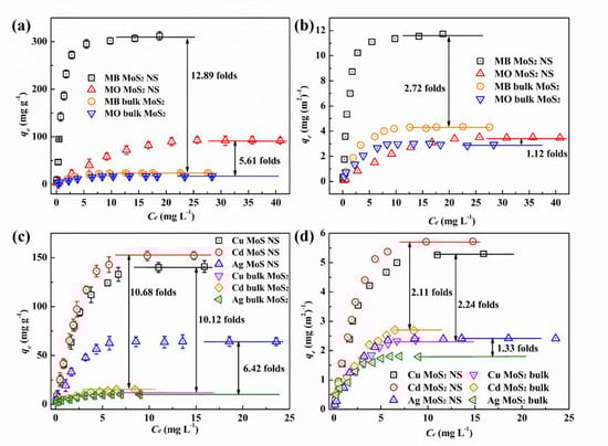 - Ye, L.; Xu, H.; Zhang, D.; Chen, S. Synthesis of bilayer MoS2 nanosheets by a facile hydrothermal method and their methyl orange adsorption capacity. Mater. Res. Bull. 2014, 55, 221–228. [Google Scholar] [CrossRef]