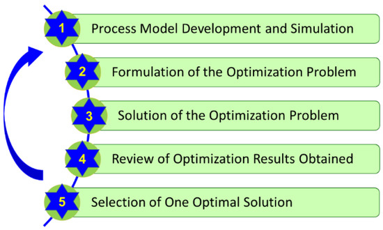 Process optimization for one or more objectives requires a systematic procedure for meaningful, reliable, and useful results. A systematic procedure for MOO of processes consists of 5 steps, which are shown in Figure 1. As will be seen from the following description of the steps, 4 of the 5 steps require domain expertise (i.e., background and knowledge) in the application area besides some computational background. This requirement is often not recognized.
