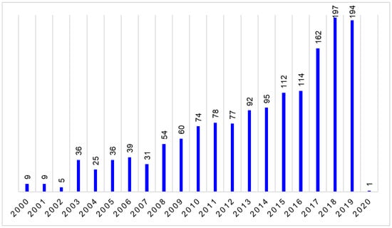 The increasing role of MOO in CPE can be seen by the growth of journal papers found by the search stated above over the last 20 years, as shown in Figure 3. The total number of papers covered in this figure is 1500, of which 159 are in open access journals and 10 are articles in press. Starting from less than 10 papers in 2000 to 2002, the number of papers increased to about 35 in 2003 to 2007, to around 80 in 2010 to 2014, and nearly 200 in 2018; the number of papers in 2019 is expected to be more than 200 (Figure 3).