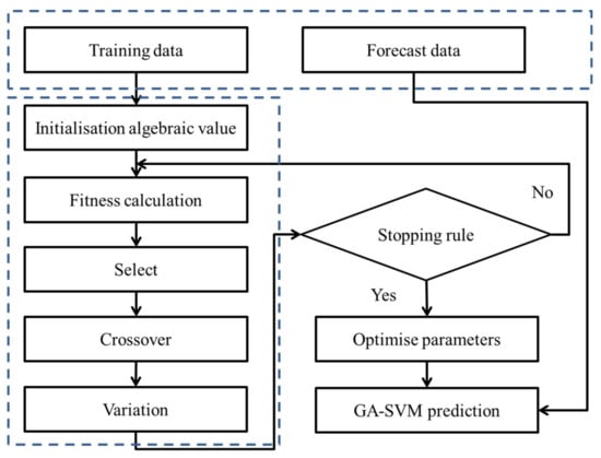 Flowchart of genetic algorithm–support vector machine (GA-SVM) parameter optimisation.