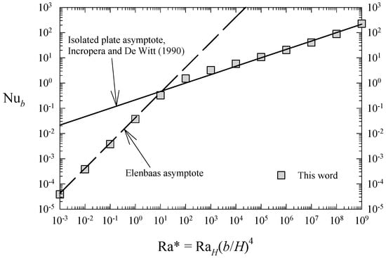 Figure 1b). The spacing between the plates forming the channel can vary, but the dimensions of the cavity remain constant. The physically periodic conditions of the array of plates described above disappear, and thus the geometrical surroundings of the isothermal channel have a relevant influence on the behavior of the convective airflow. In this case, the area dedicated to convective heat transfer does not vary, but in turn, the thickness of the thermal boundary layers adjacent to heated walls varies strongly when the inter-plate spacing