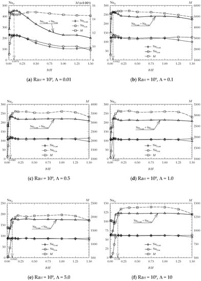 21]). In other words, both the viscous drag and the thermal drag increase faster than the buoyancy force when the temperature increases. The flow patterns could be affected strongly by the fluid variable properties for intense heating conditions; in this way, it can be expected that the thermally optimum inter-plate spacing (if it exists) is also affected by the described phenomenon.
