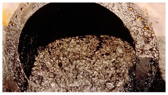 Before cleaning a tank, an analysis of the tank residues is important in order to identify their chemical composition. The sludge at the nozzle of a tank, shown in Figure 2 [5], consists mainly of organic matter (hydrocarbons varying in quality of crude oil stored at times), water and mechanical impurities at different rates, according to the point of measurement in the tank.