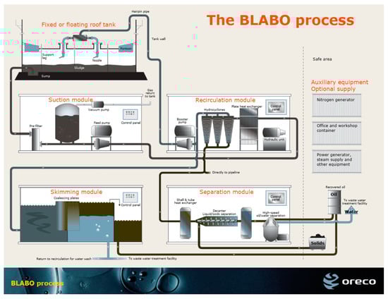 - Tank Cleaning Services, The Blabo Process. Available online: https://www.oreco.com/solutions/crude-oil-tank-cleaning/the-tank-cleaning-process/ (accessed on 3 March 2020).