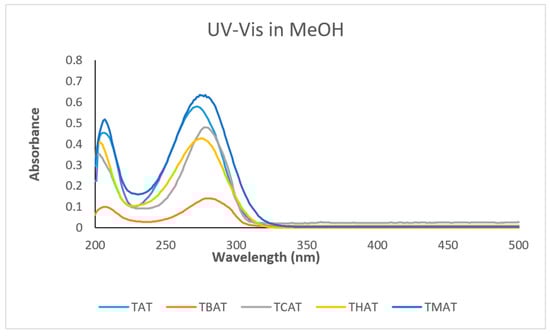 UV-Vis spectrum of sym-2,4,6-trisubstituted s-triazine derivatives (TXAT) in methanol.