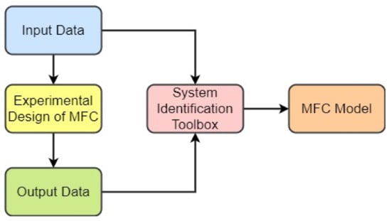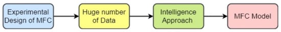 Intelligence-based models did not require in-depth knowledge of MFC and its operation. It requires only a huge number of experimental data to obtain the model through a learning approach. The accuracy of learning models significantly relies on the number of data and its sampling time. MFCs have slow dynamical characteristics, which takes a long time to get the experimental data. The modeling process using learning or intelligence approach is shown in Figure 6.