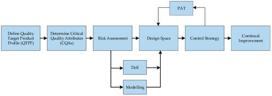 Quality by design approach [13]. PAT, Process Analytical Technology; DoE, design of experiments.
