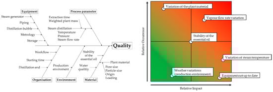 Before the start of model development, an initial risk assessment is necessary to appropriately define the modelling task, the necessary model depth and required variables. The risk assessment for steam distillation is shown in Figure 2 using an Ishikawa diagram.