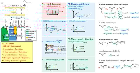 Despite the advantages shown and the associated broad application in industry, hardly any physico-chemical models have been developed to date, which are based on the fundamental mass transfer processes of steam distillation. One of the reasons for this is that the experimental characterization of mass transfer effects in the different phases is hardly accessible inside the distillation apparatus [1,11]. In addition, the mathematical, computational and experimental effort for complex models that describe all phases of water and steam distillation is high. This limits the use of physico-chemical models [2].