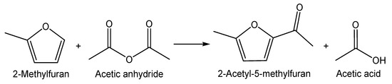 Friedel-Crafts acylation of 2-methylfuran with acetic anhydride.