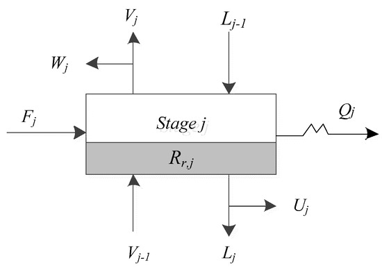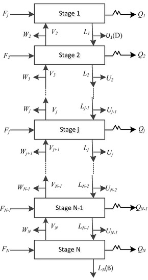 (8) The vapor–liquid flow rates Vj and Lj can be calculated by Equation (9), the vapor–liquid phase composition xi,j and yi,j can be calculated by Equation (8).