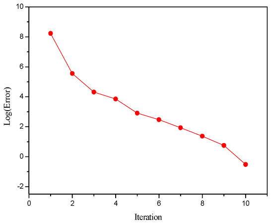 Now, the correction values of the vapor–liquid flow rate, composition, and temperature are obtained. They satisfy the material balance and phase equilibrium equation, but does not satisfy the enthalpy equilibrium equation. In the following, the iterative variable of the inside loop should be modified according to the deviation of the enthalpy balance Equation (10). Select lnSb,j as the inside loop iteration variable. If there are side products, the side stripping factors lnRL,j and lnRV,j should be added as the inside loop iteration variables. Taking the enthalpy balance equation as the objective function, the enthalpy balance equation of the first and last stage should be deleted and replaced with two operation equations of the reactive distillation column.