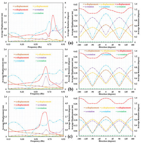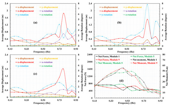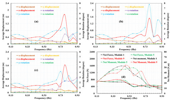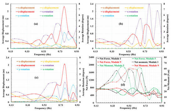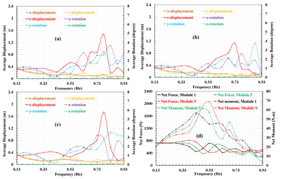 3.2. Effect of Wave Direction and Frequency on the Movement of the Modules