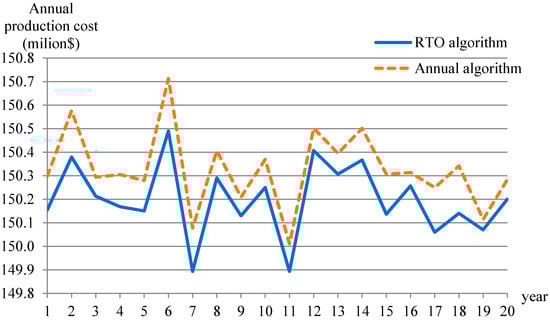 Mean of annual production cost of RTO equals annual algorithm