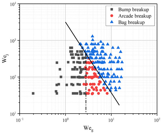 - Yang, W.; Jia, M.; Che, Z.; Sun, K.; Wang, T. Transitions of deformation to bag breakup and bag to bag–stamen breakup for droplets subjected to a continuous gas flow. Int. J. Heat Mass Transf. 2017, 111, 884–894. [Google Scholar] [CrossRef]