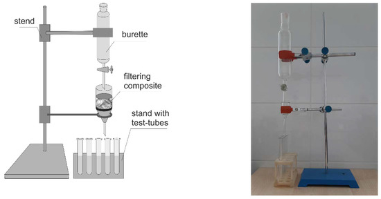 The solution of lead nitrate (75 g/L), with a constant speed (6.5 mL/min), was fed into the funnel, in which there was the porous polymer composite. The filtrate was collected in 10 mL portions. Furthermore, the obtained materials were studied using X-ray fluorescence analysis, which was carried out using a Spectroscan-MAX-G spectrometer (LLC “NPO” SPECTRON, Russia, St. Petersburg) with a scanning crystal-diffraction channel. Gauge curves were previously found to determine the concentration.