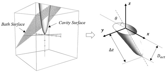 The volume of the jet penetration cavity can be determined by calculating liquid steel replaced by the gas flow based on the impulsive balance at the cavity interface if ignoring the impact of the liquid steel surface tension [21]. The expression of the jet cavity volume can be written as: