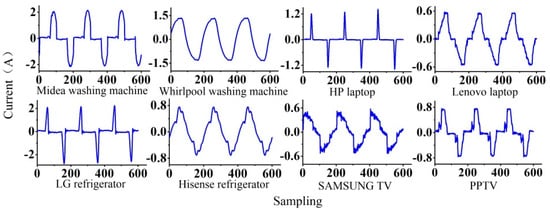 Current waveforms of different categories of electrical appliances with the same load.