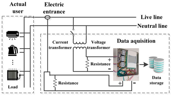 Actual user data are collected and used for validity verification in this paper. Figure 5 shows the schematic diagram of the experimental system, which is designed for non-intrusive data acquisition from the actual user. By the proposed method in Section 3, the collected data are processed to realize the effective load monitoring.