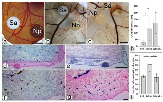 3.1. Morphological Effects of SaMNPs on the CAM Assay