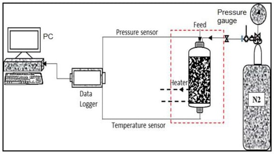 During the experiment investigation, heat and pressure were monitored, and condensate properties were measured before and after introducing TCFs. Figure 2 displays the experiment configuration used to monitor the process. The setup consisted of a high-pressure and high-temperature (HPHT) reactor, pressure and temperature sensors, a heater, an N2 cylinder, and a data-acquisition system. Thermochemical fluids were injected into the HPHT reactor, and no rock sample was used in order to minimize the uncertainty associated with rock composition. Subsequently, the reaction was triggered by acetic acid. A pressure source (N2 cylinder) was utilized to study the reaction behavior for various pressures. High-accuracy sensors in combination with a data logging system were used to record the temperature and pressure profiles as a function of time.